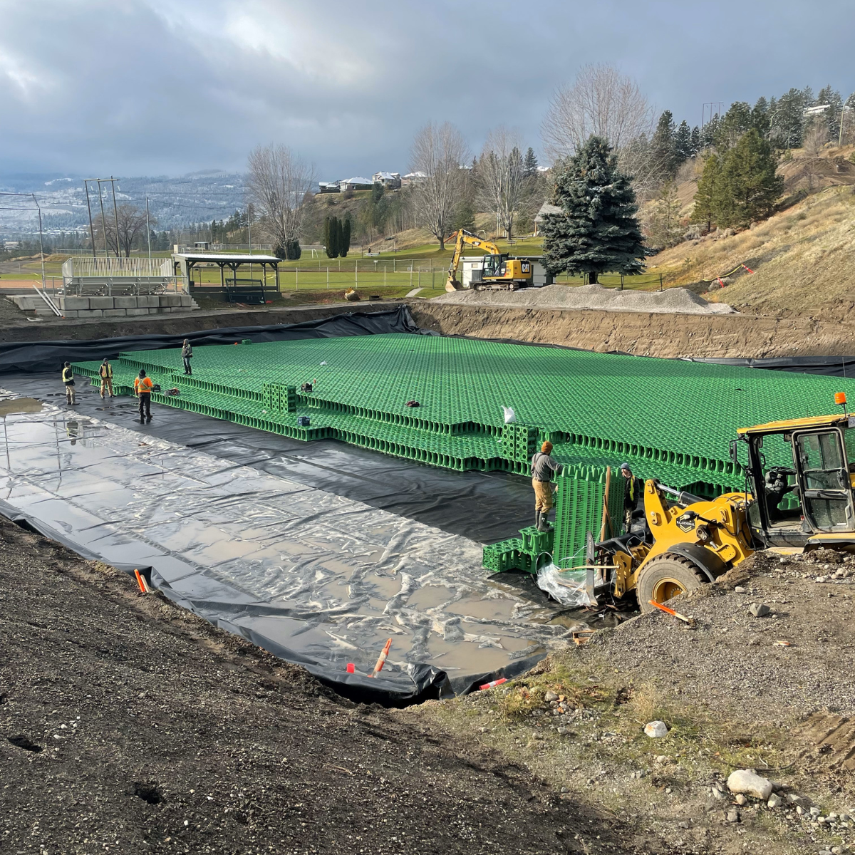 Approximately 164,176 ft² (15,252 m²) of custom geocell panels were supplied by Titan along with 2,700 ft² (251 m²) open cell ACBs 4.75” in thickness and 180,000 ft² (16,723 m²) of TE-8 Nonwoven Geotextile.